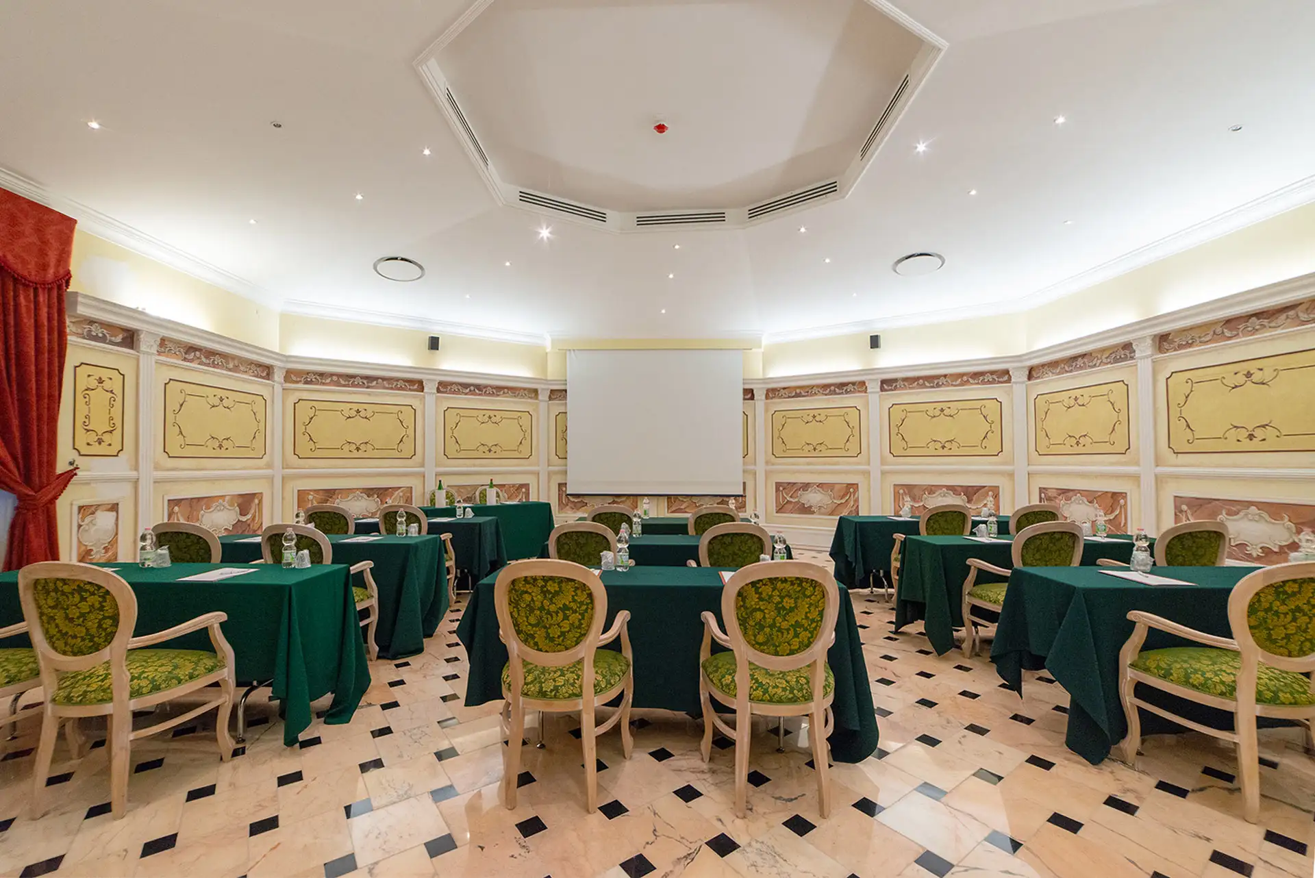 La Sala si contraddistingue per la particolare forma ottagonale e per le pareti elegantemente affrescate a mano perfetta per meeting di medie dimensioni.