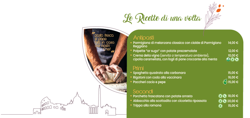 Il protagonista indiscusso al Ristorante a Frascati in Villa Tuscolana è il nostro Menu À la carte stagionale infatti le ricette di pesce e i piatti tradizionali sono interpretati con nuova fantasia e attenzione culinaria. In cucina c'è voglia di stupire.